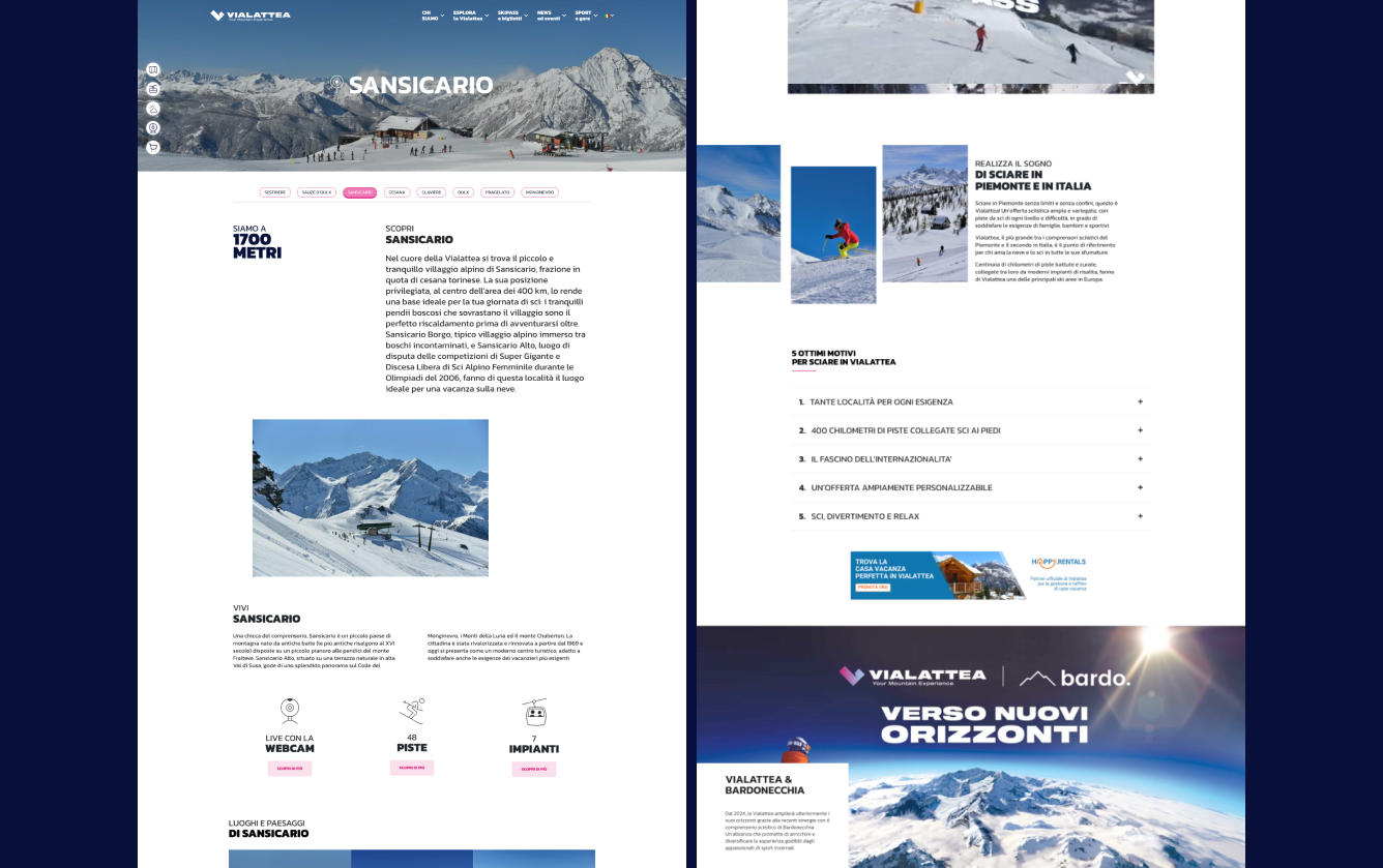 I developed the visual identity and creative direction for Vialattea, one of Italy’s largest ski resorts. The project involved reimagining the brand’s aesthetic across digital and print touchpoints, defining a cohesive visual system capable of unifying multiple locations and experiences under a single, contemporary identity.